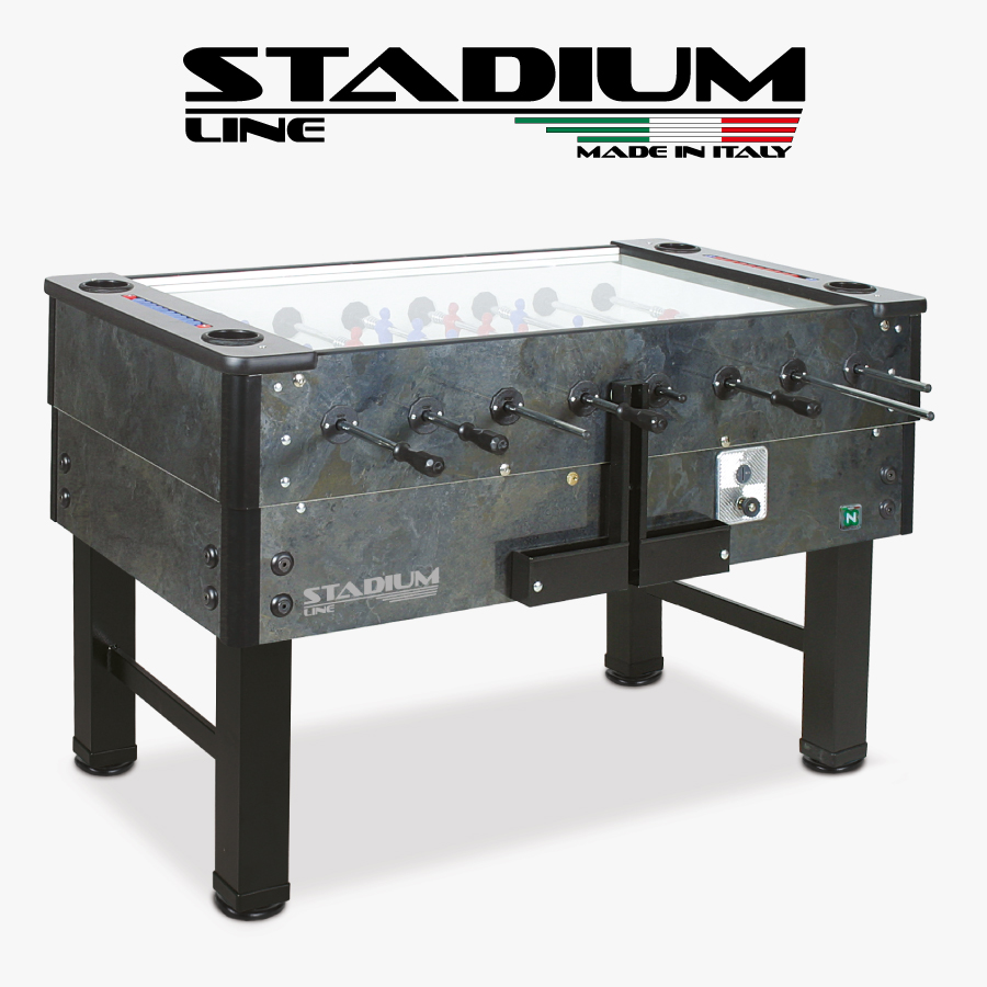 Adatto agli operatori e a coloro i quali vogliono sfidarsi in competizioni e partite di estrema precisione. Particolarmente robusto e stabile con un innovativo sistema interno di ritorno palline e copertura di protezione in vetro temperato di 5 mm. Questo rende il calcetto piu’ silenzioso. Grazie all’alzapalline dato in dotazione evita il furto delle stesse.